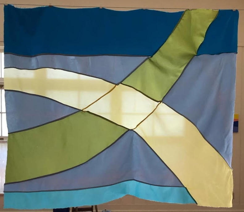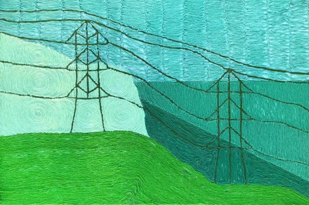 Electric towers, SELA. Tapestry wool yarn, pencil, glue on wooden panel. 2024.