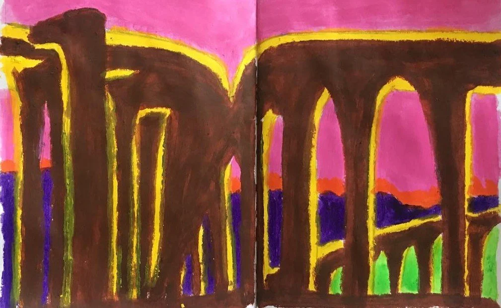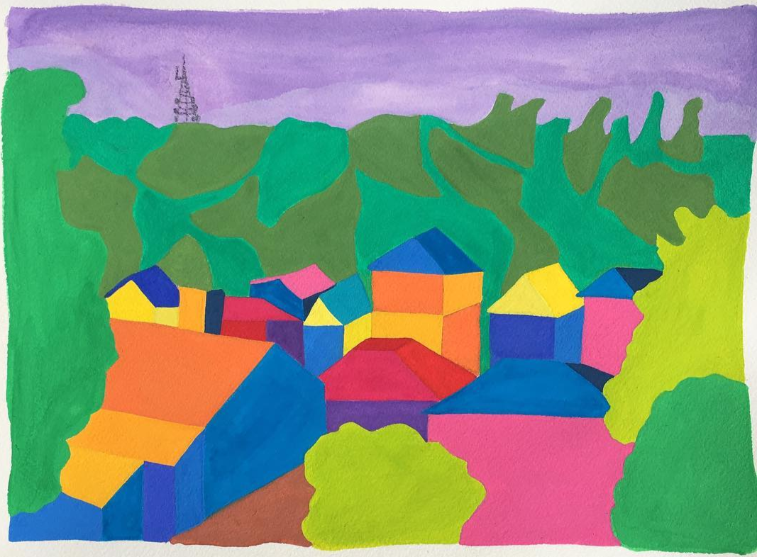 Solano Canyon, Elysian Park. gouache, pencil on watercolor paper. 2019.